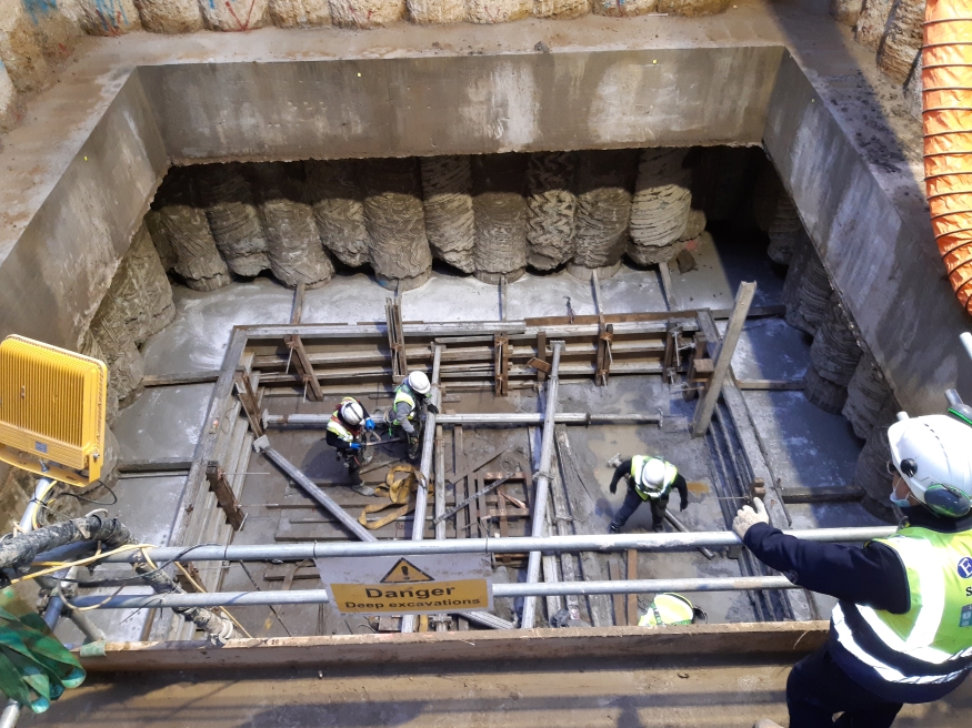 Phase 2 of the project consisted of pile enabling, secant walls and bearing piles, temporary works to facilitate bulk excavation and a top-down-bottom-up construction. During tendering of the temporary works package, a value engineering exercise was carried out to assess the cost, quality and time benefits of two different options: